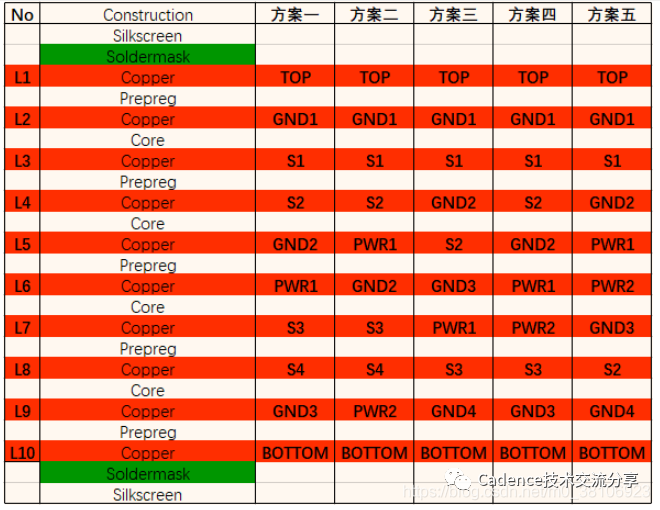 10层板优选叠层方案主要有五类: