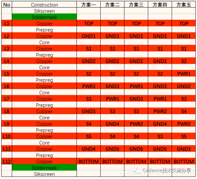 12层板优选叠层方案主要有五类: