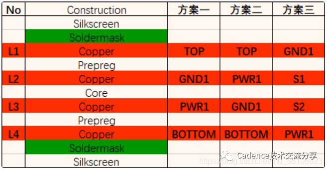 4层板优选叠层方案主要有三类: