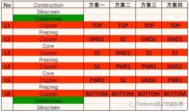 6层板优选叠层方案主要有三类: