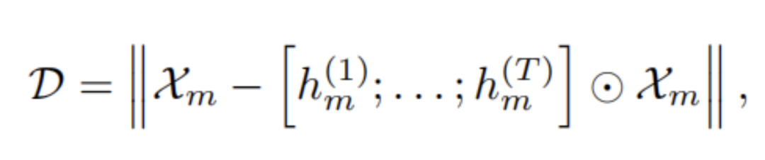 其中表示Hadamard的结果。我们现在可以将我们的目标重写为公式 1 中的最小化D。同时对于每个模态m也最小化