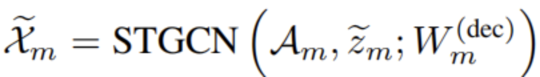 从加权潜在特征中,我们的解码器使用另一个STGCN生成输入图节点的重建