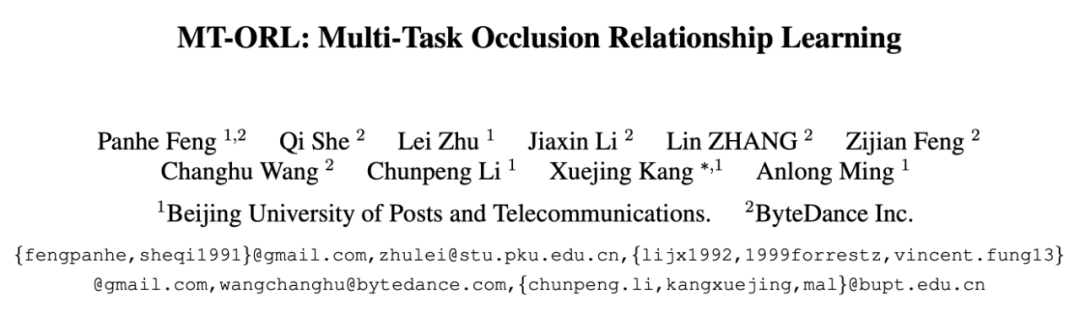 本文提出的 MT_ORL(Multi-task occlusion relationship learning,即多任务遮挡关系学习),也主要从上述两个问题出发,做出了两个主要贡献: