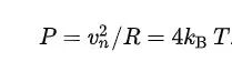 电阻器所产生的噪声可以传递至其余电路;最大的噪声功率传递发生在噪声产生阻抗与剩余电路的戴维南等效阻抗阻抗匹配时。在这种情况下两部分阻抗中的任意一个的耗散噪声均作用在其本身和其他电阻。由于其中的任何一个电阻只有一半的压降,因此噪声功率为: