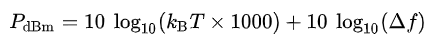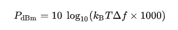 准确的说,第一项的值为-173.9155206 dBm, 约为-174dBm,这也就是-174dBm/Hz的由来了。