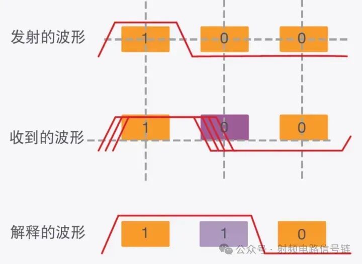 正如我们之前提到的,如果您的信号未与参考时钟同步并且抖动超出了容限值,接收机最终将错误地解释该比特。举一个简单的例子,请参见图4中的情况。发送的数据是二进制的 100。但是,在接收到的波形中存在一些抖动,这导致第二个比特在接收机中显示为 1,而实际上发送的比特为 0。因此,接收机解码得到的结果为 110。