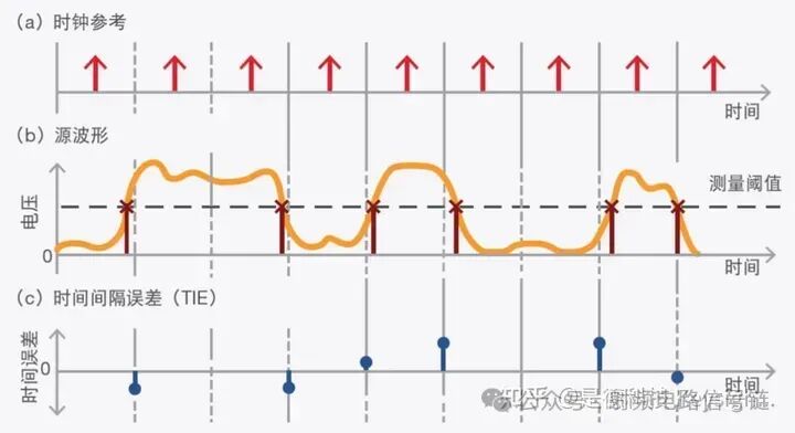 边沿交叉点实际发生的时间与理想情况下应发生的时间之差称为时间间隔误差(TIE)。
