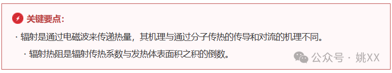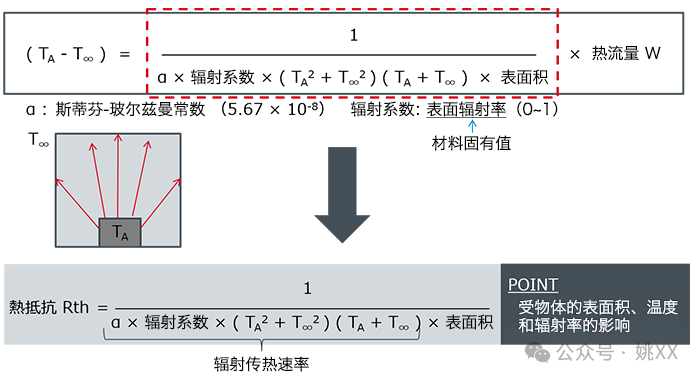 辐射热阻是辐射传热系数与发热体表面积之积的倒数。从公式可以看出,物体的表面积、温度和辐射率均会影响辐射热阻。