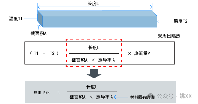 热传导是指物质间、分子间的热能移动。这种传导方式的热阻如下图和公式所示。