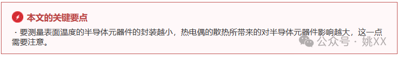 不过在现实中,测量已安装在电路板上的各元器件的表面温度时,多使用①中的热电偶方法,所以在这里我们将介绍一下使用热电偶测量表面温度时的相关要点。