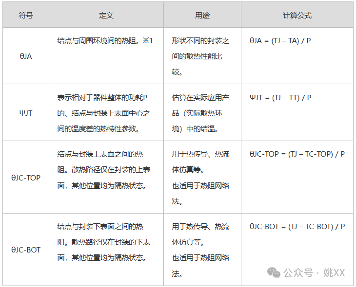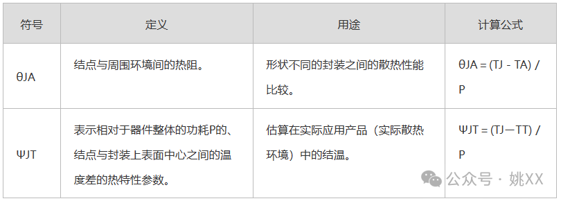 这些均在JEDEC标准的JESD51中进行了定义。下表中汇总了每种概念的定义、用途及计算公式。