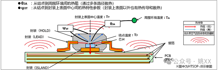 表格中建议的用途是θJA:“形状不同的封装之间的散热性能比较”,ΨJT:“估算在实际应用产品中的结温”,下面来思考一下这样建议的原因。
