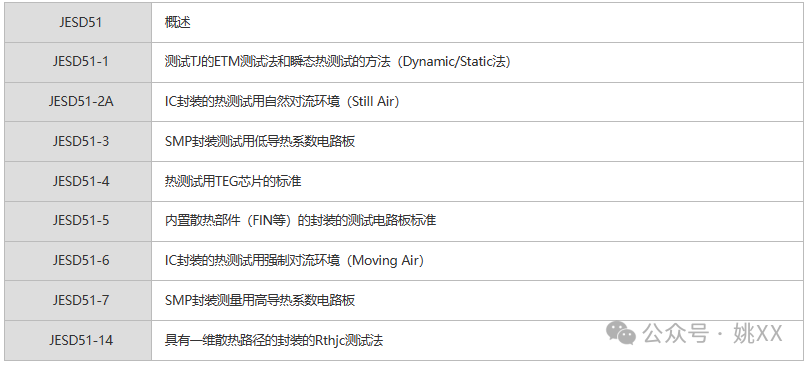 JESD51系列中具有代表性的热标准如下: