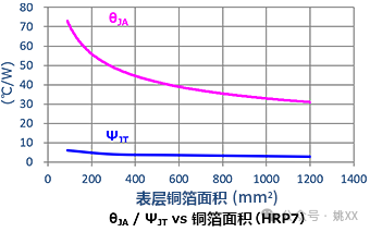 ●θJA随有效散热范围的变化而变化