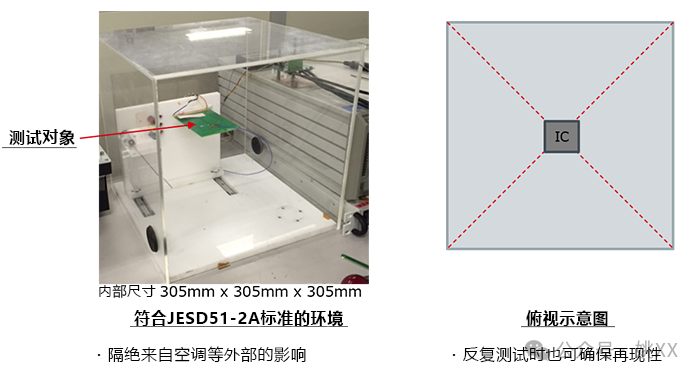 JESD51-2A中规定了热阻测试环境。以下是符合JESD51-2A的热阻测试环境示例。