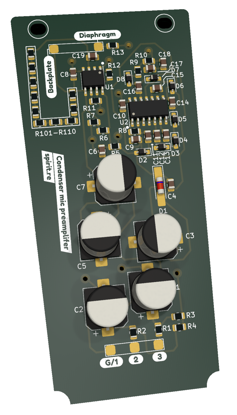 studio_mic麦克风电路板非常简单,但性能很高——它在单个封装中使用了一个双通道场效应管输入运算放大器来转换胶囊(capsules)的阻抗并提供差分信号,而偏置电压则由一个具有施密特触发输入的六路反相器(Nexperia HEF40106B,Hex inverting Schmitt trigger)提供。