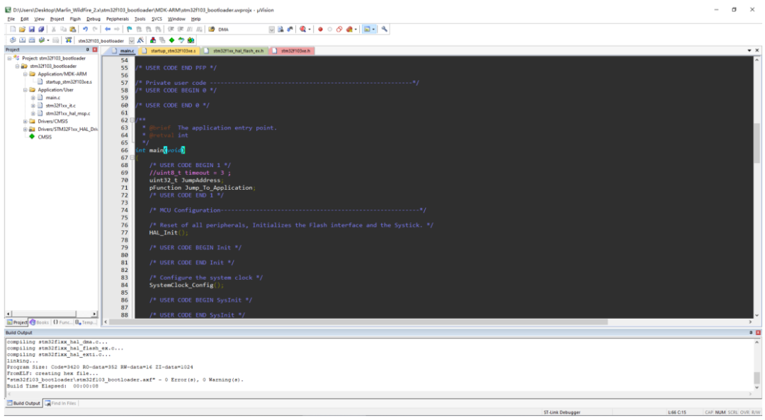 所以直接将编译好的 Marlin 固件上传到 STM32 开发板是无法执行成功的,所以我们需要编写一个bootloader ,用于启动并跳转地址到 0x8007000 这个地址,这样 Marlin 固件才能跑起来。
