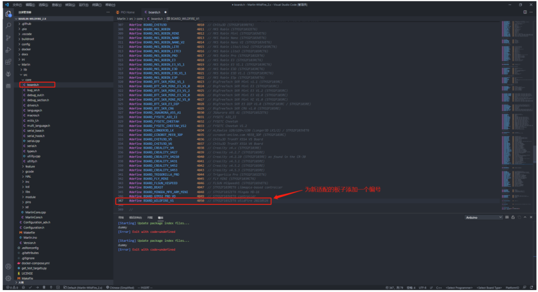 要让Marlin能够识别到硬件平台,我们需要在 boards.h 中定义相应的板级编号,如下所示: