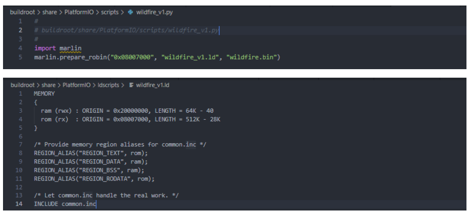 ## buildroot/share/PlatformIO/scripts/wildfire_v1.py#import marlinmarlin.prepare_robin("0x08007000", "wildfire_v1.ld","wildfire.bin")