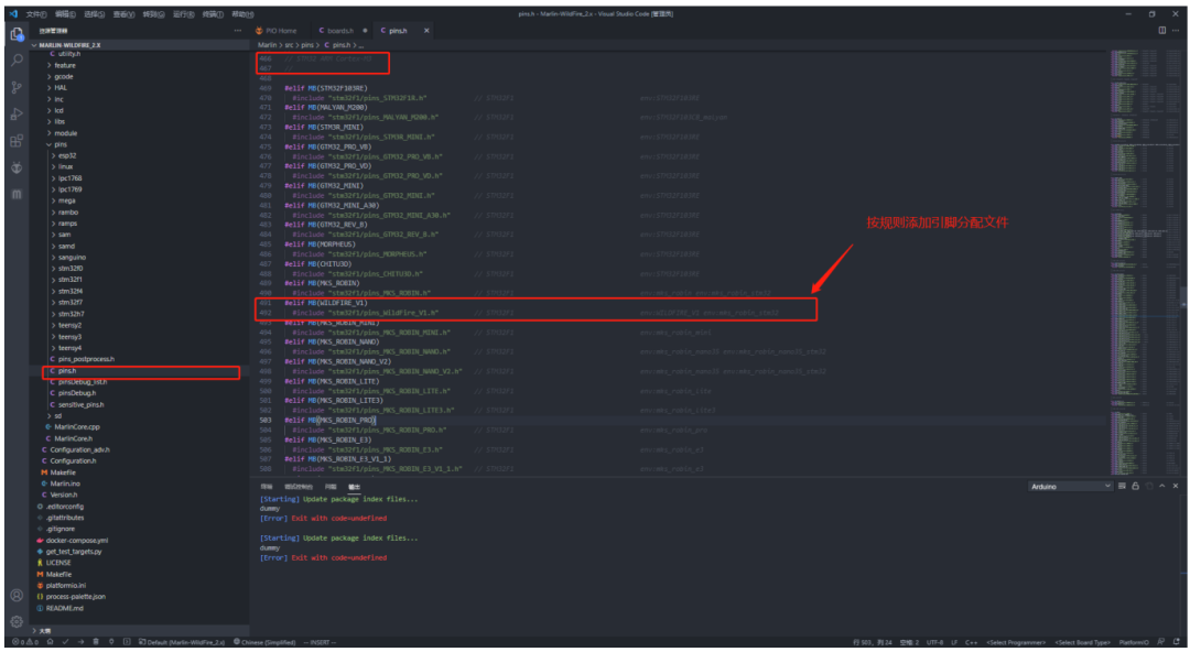 将这个文件里的所有代码复制到 pins_WildFire_V1.h 中去: