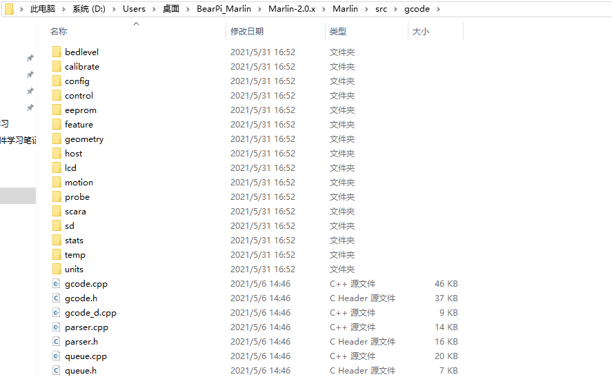 包含GCodeParser 类的定义以及所有G代码命令的实现(有一些不在这里实现,但大部分是的),这 些功能都被包装在一个名为 GcodeSuite 的类里,G代码实现的文件被捆绑在多个类别的子文件夹 中,这些文件被命令为具体的G代码,因此可以使用 IDE 的查找功能找到它们。