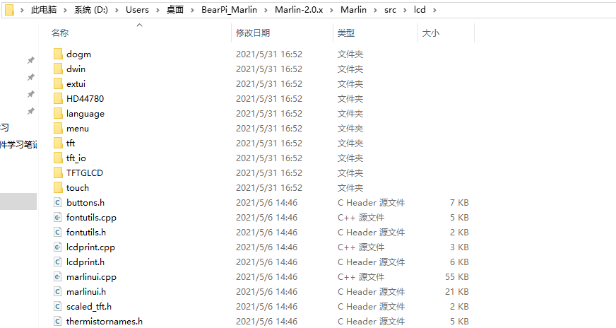 所有与 LCD、TFT、OLED、编码器、按钮和串行控制器的相关代码都放在这里,语言翻译通常仅 适用于外部控制器,因此语言翻译也放在这里。