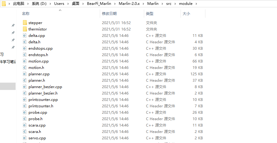 这里定义了机器的所有典型功能,包括 3D 打印机拥有的所有的组件,例如:加热器和传感器、热 床探测、路径规划算法、将命令转换为分段运动的高级运动功能、将毫米分段快速转换为步进块的 运动路径规划,以及将块段转换为中断时序和STEP信号的步进器 ISR 。