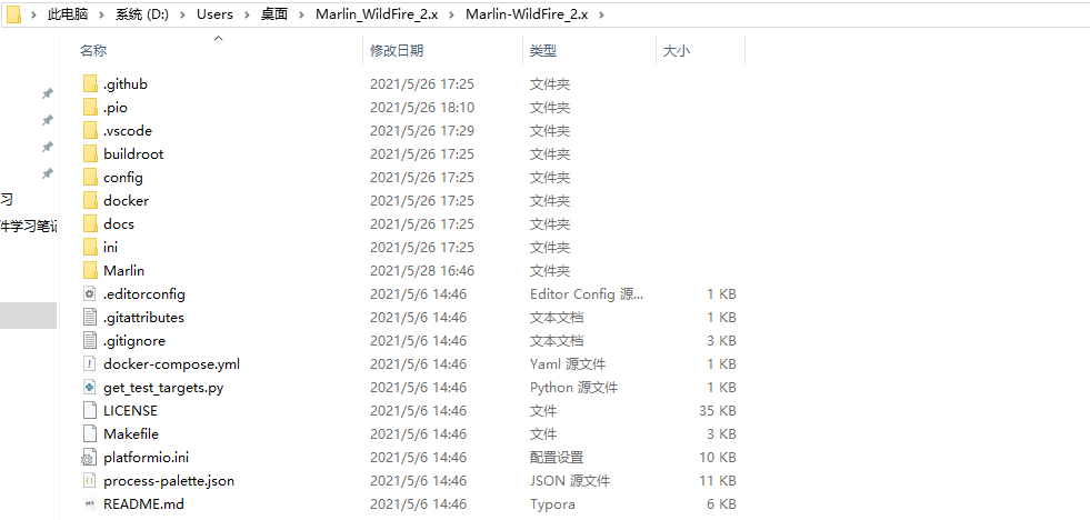当使用 PlatformIO 构建Marlin时,它会在.pio此处创建一个文件夹,并且在shell中使用git的时候,这 是当前的工作目录,如下图所示: