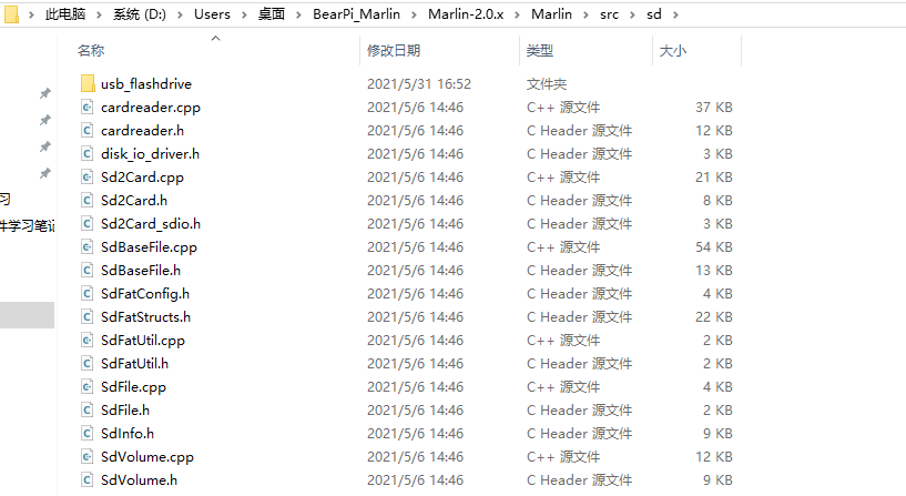 在这里您可以找到所有实现实际文件和文件夹的高级文件系统代码。 CardReader 类是Marlin用 于导航目录、打开G-code文件和从SD卡(或其他媒体)打印的主界面。自从Marlin 2.0.8以来,所有 的媒体类型都派生自 DiskIODriver 抽象类。