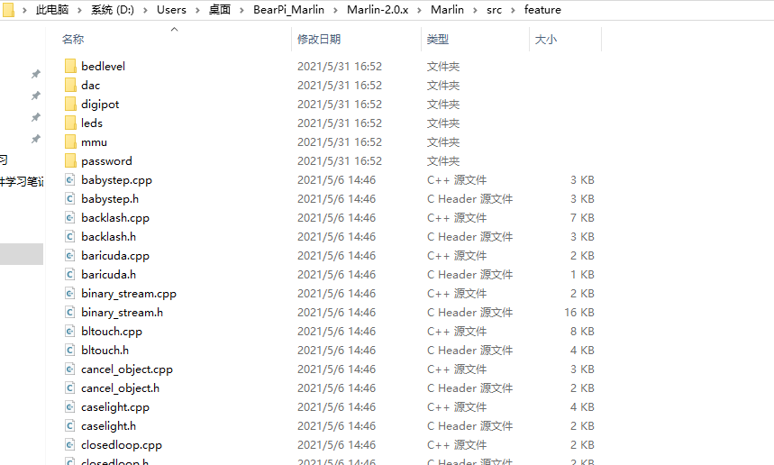包含一些可选功能的支持代码,当然这个文件夹下的代码有些功能是非常简单的,只需要添加一个 G代码或者在公共代码中插入更改即可完成。如果一个特性需要定义一个类或者一组函数,这些附 加的文件将放在这个位置。