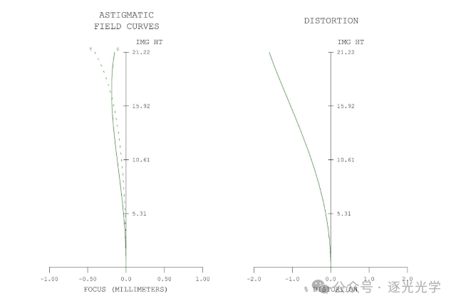到现在,您可能想知道这个镜头是什么样的——图11和图12展示了镜头及其视场曲线(像散、Petzval、畸变)的样子。