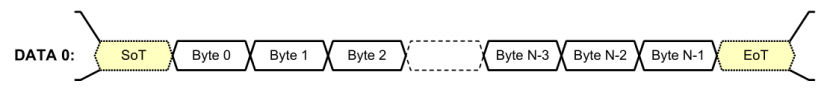 图中的SoT是Start of Transmission的缩写,表示传输开始,EoT是End of Transmission的缩写,表示传输结束,共发送N个字节的数据。
