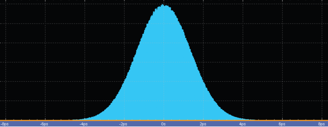 与随机抖动对应的,是确定性抖动(Dj, Deterministic Jitter),它是有界的。在有限的样本数之内,Dj的峰峰值会很快趋于稳定,并维持不变。Dj的测量结果常常用峰峰值来表示。Dj最重要的两个成分是周期性抖动(PJ, Periodic Jitter)和数据相关性抖动(DDJ, Data-Dependent Jitter)。