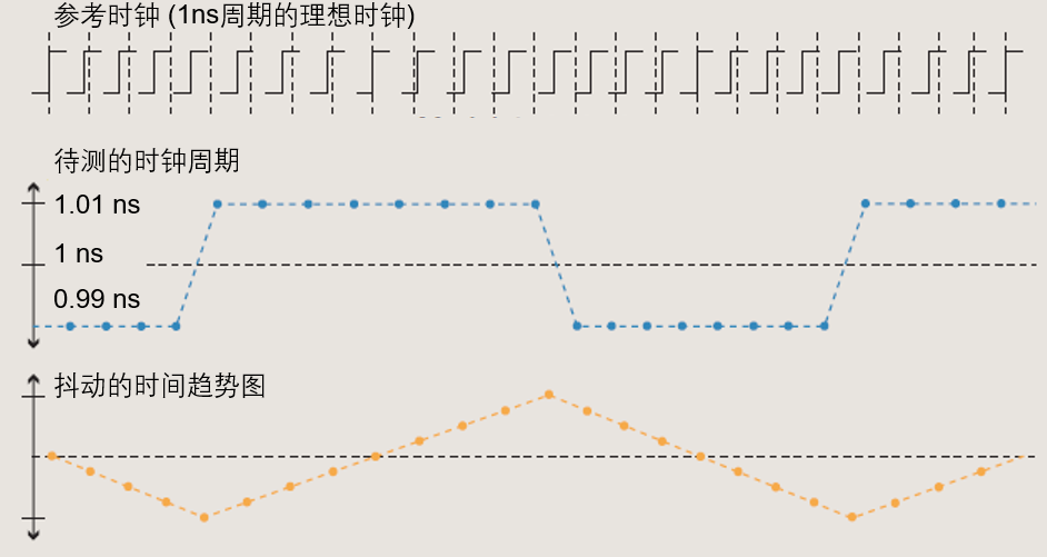 教科书上的数字信号,每个时钟周期都严格相等,每个数据UI (Unit Interval, 即每个bit的时间长度)也都严格相等,但真实世界里这种信号是不存在的。由于热噪声和各种因素的影响,时钟或数据的边沿往往存在不确定性,其真实位置和理想位置之间的偏差,就是所谓的抖动。当时钟信号或数据信号存在较大的抖动时,接收机在识别信息时就会出错,导致信息传递出现“误码”(Bit Error)。