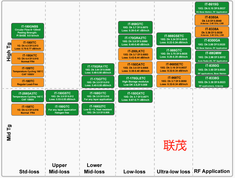 对于高频板材而言,虽然PTFE和PCH材料具有极低的介电损耗(Df)和稳定的介电常数(Dk),但受限于其加工性能,难以应用于高多层板和HDI板的加工。为了解决这一问题,材料开发商开始采用PPO树脂来制作高频板。例如,联茂推出的IT-88GMW、IT-8300GA、IT-8350G、IT-8338G、IT-8615G等高频板材,便是采用改性PPO树脂和碳氢树脂的混合体系,既满足了高频信号传输的需求,又大大增强了材料的可加工性。