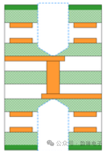 1、下图中,你可以看到带有延伸到信号路径之外的过孔存根的PCB