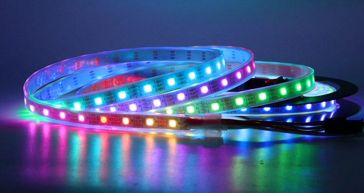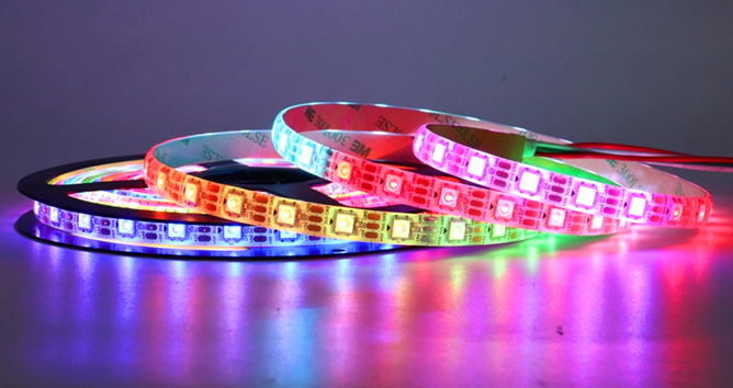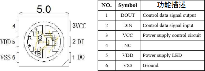 在5050封装内集成有控制电路和RGB芯片,形成完整像素点控制; -