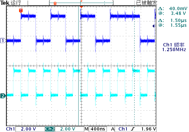 通过观察DI的波形,可以看到它处于高电平的时间超过400us,并且低电平大约为1.5V。这说明Q1的驱动不足。
