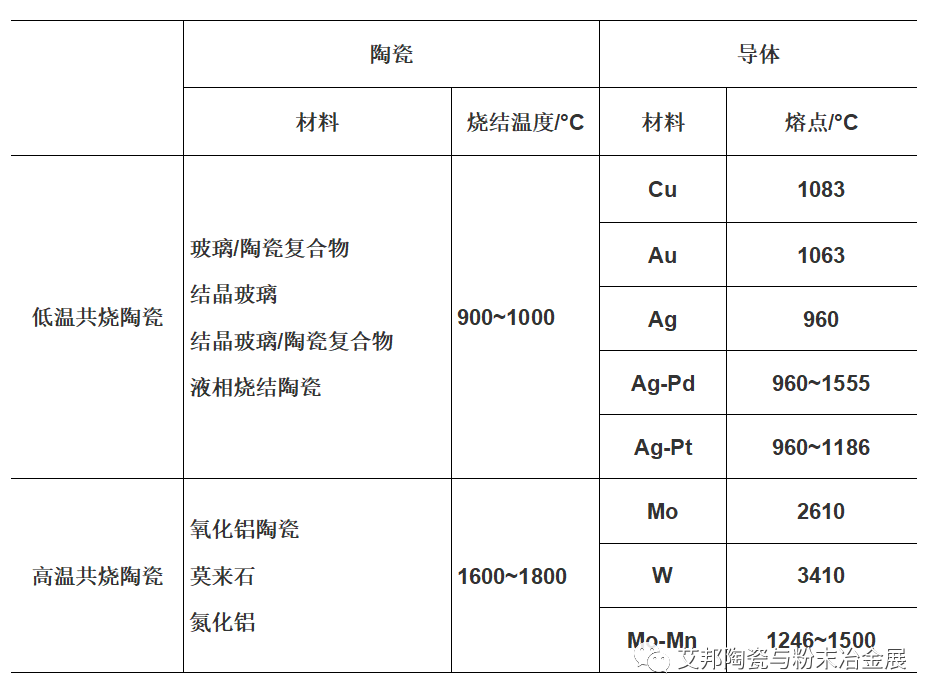 低温共烧陶瓷为了保证在低温共烧条件下有高的烧结密度,通常在组分中添加无定形玻璃、晶化玻璃、低熔点氧化物等来促进烧结。玻璃和陶瓷复合材料是一种典型的低温共烧陶瓷材料 。此外,还有晶化玻璃,晶化玻璃和陶瓷的复合物及液相烧结陶瓷。所用的金属是高电导材料(Ag、Cu、Au及其合金,如Ag-Pd、Ag-Pt、Au-Pt等)。 -