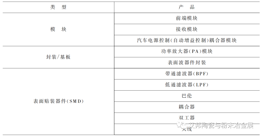 常用的LTCC 电子元器件产品包括滤波器、双工器、天线、巴伦、耦合器、功分器、共模扼流圈等,广泛应用于移动通信终端、WiFi、汽车电子、T/R 组件等领域。
