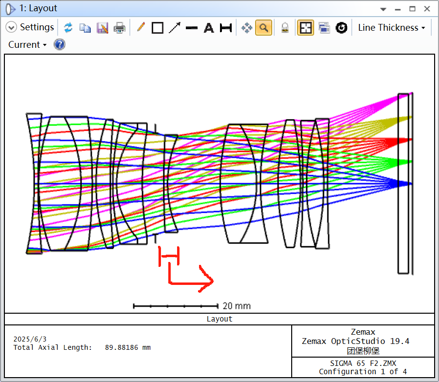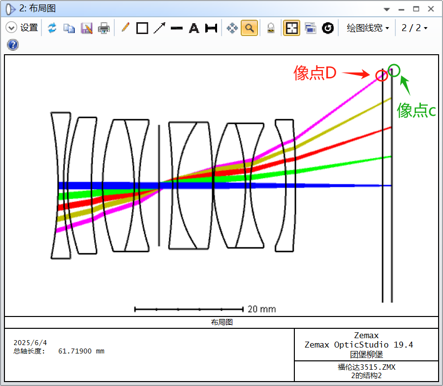 也许有人会说像点B是弥散斑,判断是否合理?看布局图2收缩光圈至F32,此时景深变大,像点C与像点D均成清晰像,主光线高度与大光圈保持一致,呼吸效应保持一致。