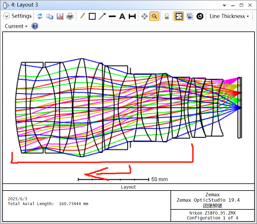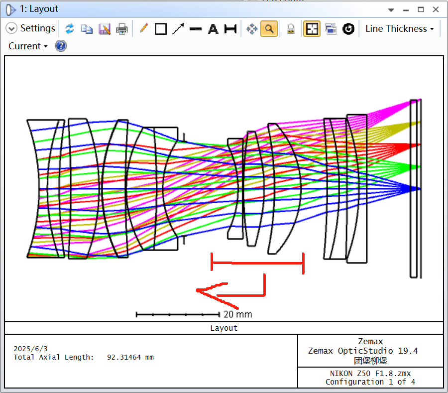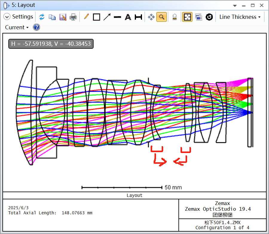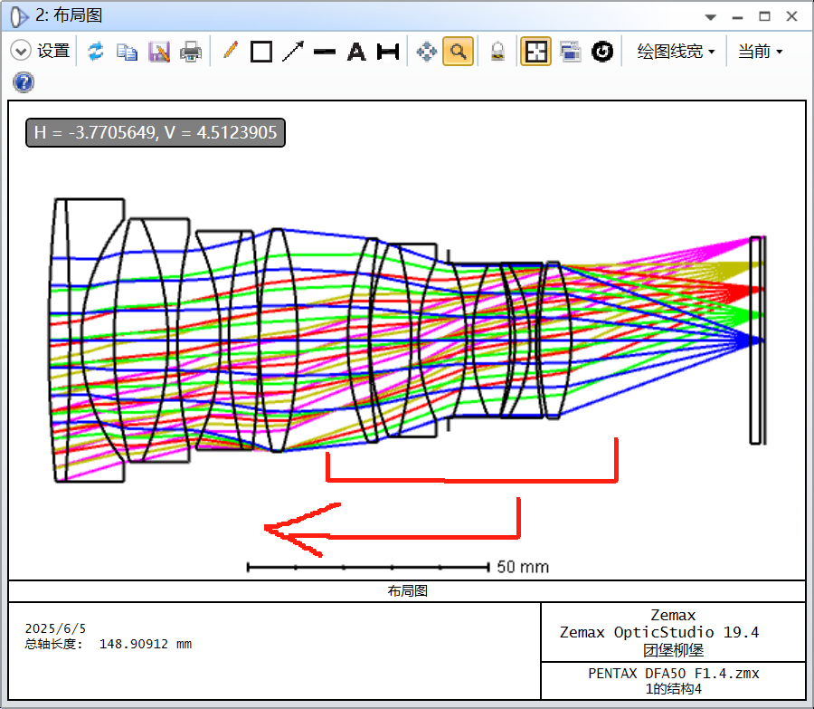 下面我使用一个结构进行放缩,保证FNO、靶面一致,对比50MM、100MM从无穷远至1m的呼吸效应。