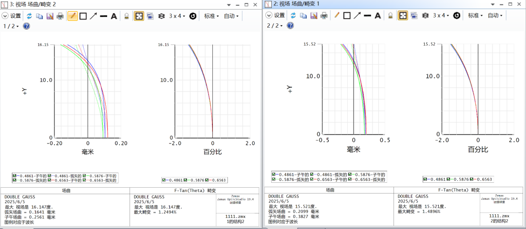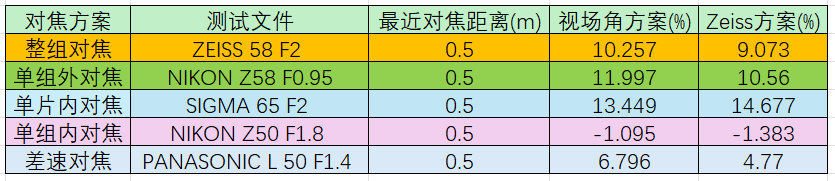 通过这个文件的非严谨对比,仅焦距不同,对焦变化的视场角非常接近,但变化的部分对于视场角更小的系统占比更大,呼吸效应也更明显。