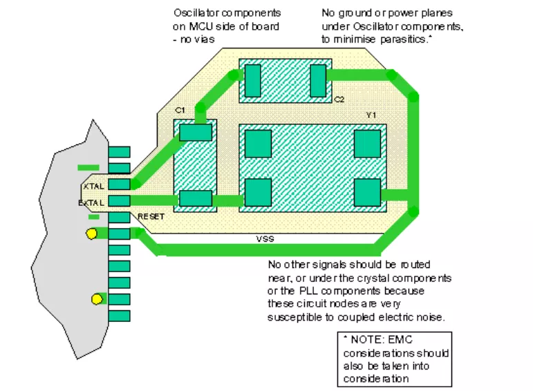 • 时钟发生器、晶振和CPU 的时钟输入端都易产生噪声,要相互靠近些;