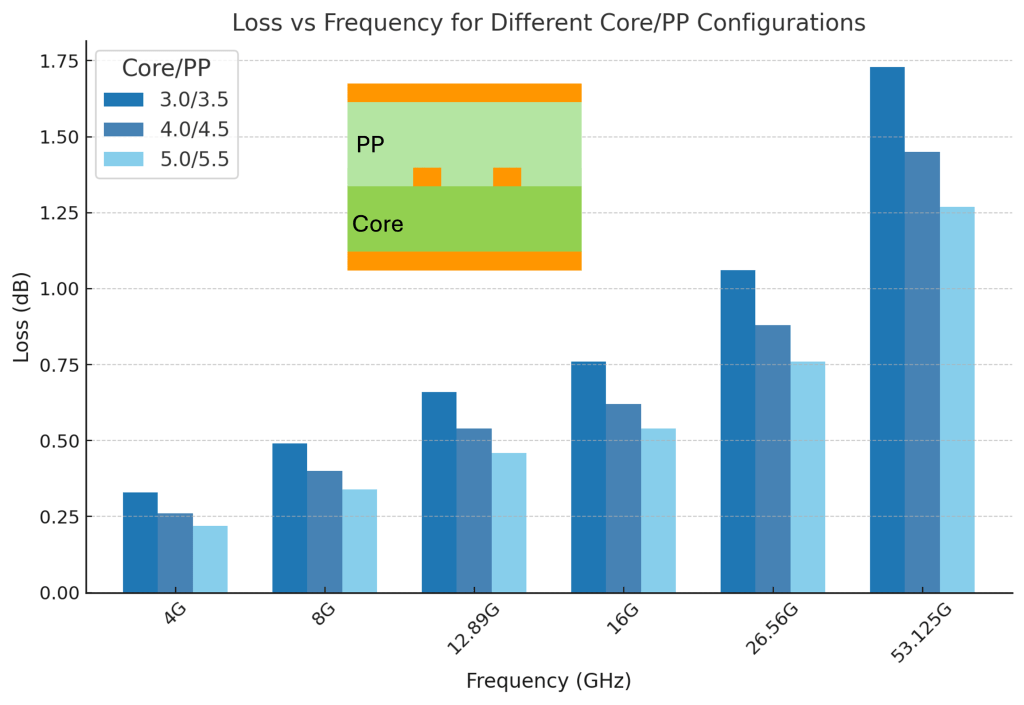 适当增加Core/PP厚度 → 有效降低PCB的总体传输损耗。