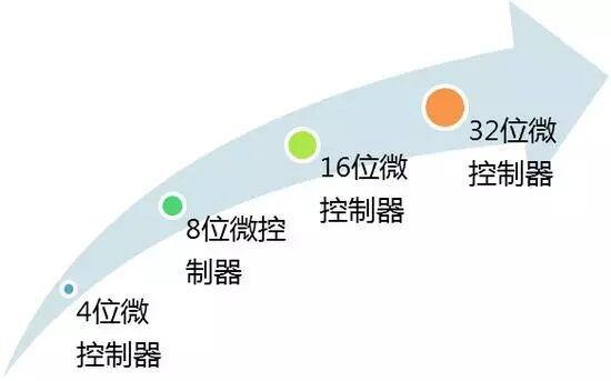 MCU(Microcontroller,即微控制器)根据数据处理能力不同,分为4位、8位、16位、32位微控制器,如下图: