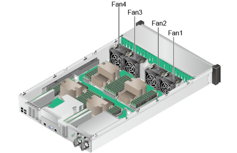 支持4个风扇模块,支持热插拔、支持单风扇失效。支持可变的风扇速度,配置在同一服务器的风扇模块,风扇模块型号必须相同。