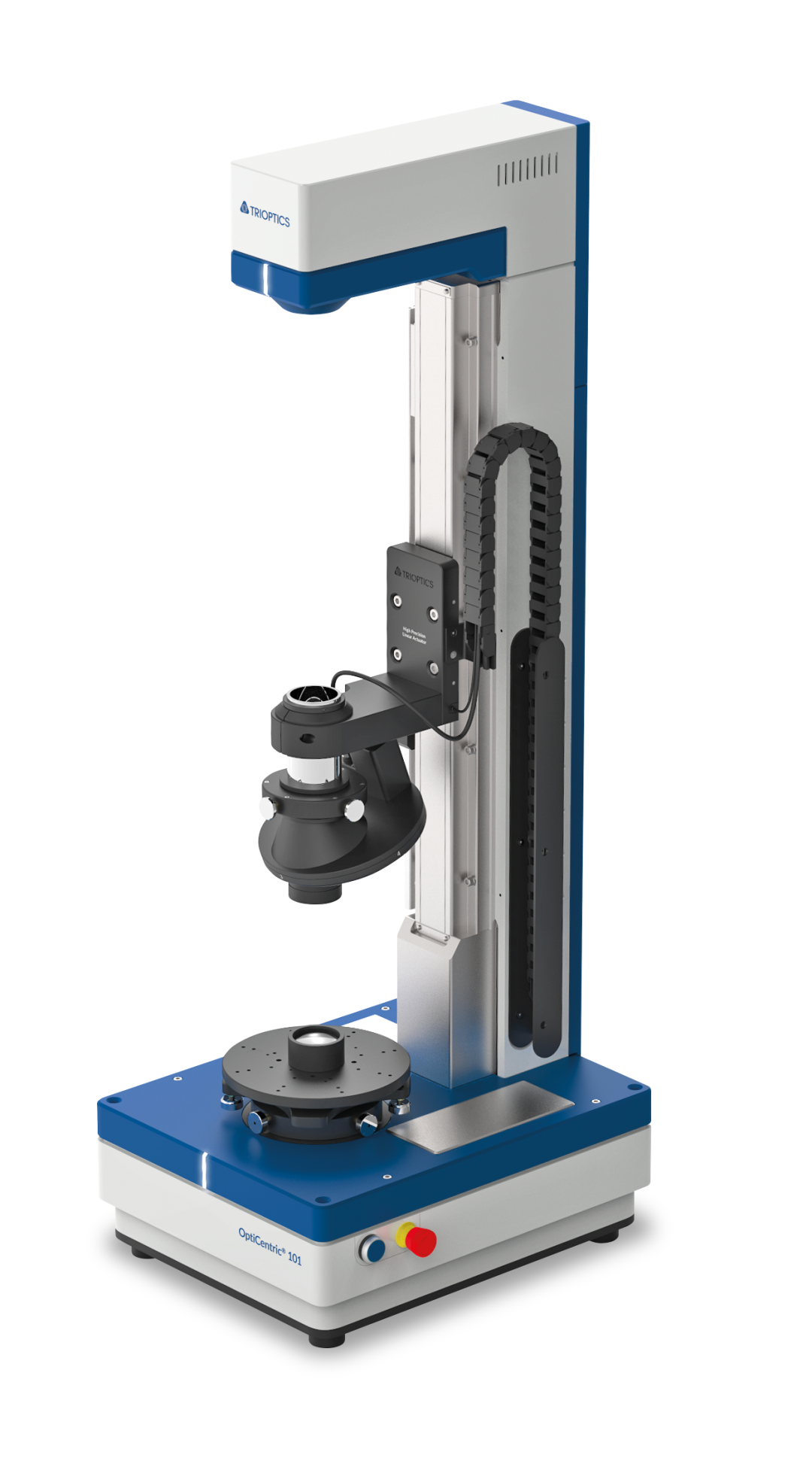4. 中心偏差 光学中心偏差是指镜片光学中心与几何中心的偏移量,其偏差会导致光线偏折,产生棱镜效应,不仅会严重影响成像清晰度与视场均匀性,还可能造成成像偏移、边缘像质退化等问题。在高精度光学系统中,微小的中心偏差会被系统放大,进而影响整个光学设备的性能稳定性,因此其检测精度要求远高于普通应用场景。在中心偏差检测设备中,中心偏差测量仪凭借其高精度、自动化的优势,已成为精密光学镜片检测的核心设备,相较于传统的光学投影仪、焦度计,其在测量精度、效率及适用范围上均有显著提升。 TRIOPTICS中心偏差测量仪