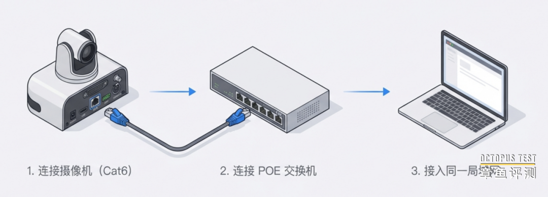 为了解决摄像机的供电问题,NDI也充分考虑了与PoE网络供电结合。配置PoE交换机后,摄像机就可以直接上电运行,无需额外电源。