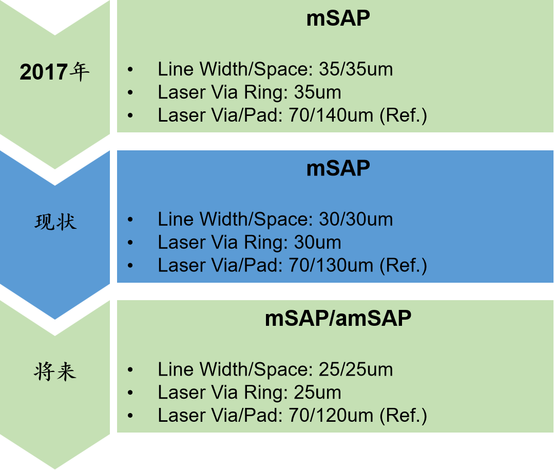 • mSAP:改良型半加成法Modified Semi-Additive Process。